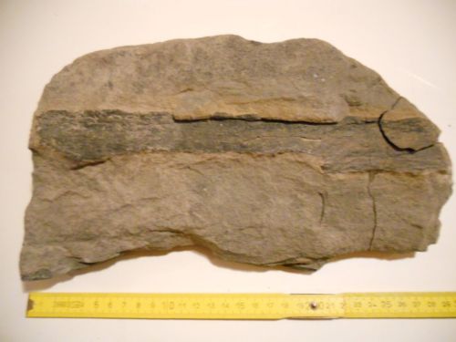 Plantae: Frustoli carboniosi in arenaria, resti vegetali provenienti da Digonera. ambiente continentale terrestre. | Italia , VENETO , SELVA DI CADORE ( BL ), Mondeval