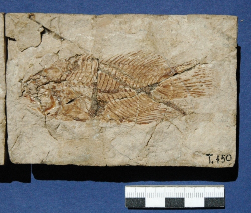 fossile (pesce fossile suddiviso in parte e controparte, esemplare)