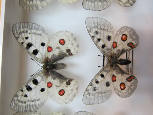 Arthropoda Insecta Lepidoptera Papilionidae Parnassius apollo: 2 esemplari di Parnassius apollo argyens | Italia , Trentino Alto Adige , ( TN ), Fadalto