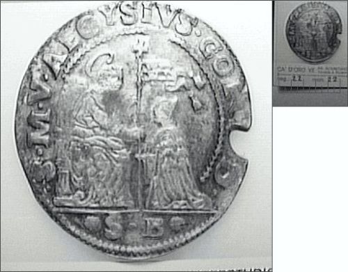 Dritto: .S.M.V.ALOYSIVS.CON[T].D.;il Doge ing.ricrve da San Marco seduto in trono il vessillo della Repubblica;esergo,rosettaS.Brosetta. Rovescio: DVCAT[V]S.VENETVS rosetta;leone alato stante a s.con zampa anteriore d.poggiata sul Vangelo; alle spalle castello;esergo,tre rosette