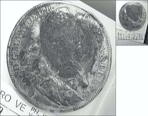 Dritto: .D.G.MAX.IOS.V.R.D.S.R.I.A.&.ELL.;busto di Massimiliano Giuseppe a d.. Rovescio: PATRONA BAVARIAE;la Beata Vergine sulle nubi,con corona ed aureola;scettro in mano;piede su crescente lunare;Bambino in braccio;esergo,1766