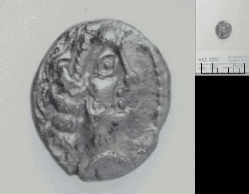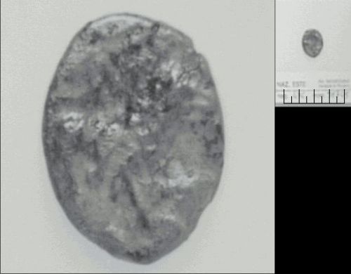 Dritto: Testa della dea Reitia a d.. Rovescio: In alto tracce di pseudo legenda per