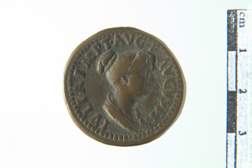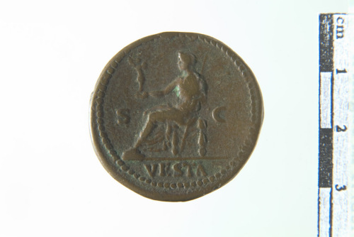 Dritto: Busto drappeggiato di Giulia a d.; contorno perlinato. Rovescio: Vesta seduta a s. con Palladio e scettro; contorno perlinato