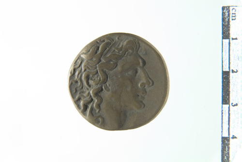 Dritto: Testa di Mitridate a d. con capelli ondeggianti. Rovescio: Cervo pascente a s. entro ghirlanda