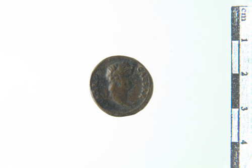 Dritto: Busto laureato di Nerone a d.; contorno perlinato. Rovescio: Nerone radiato e togato stante frontalmente con ramoscello e Vittoria su globo; contorno perlinato