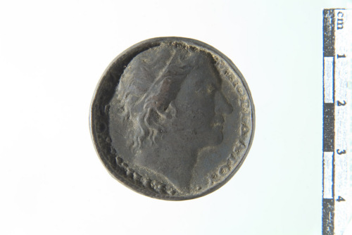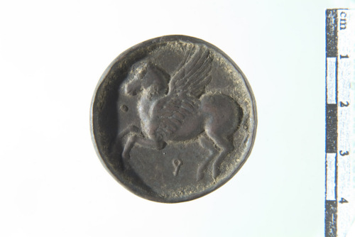 Dritto: Testa laureata a d.; contorno "cordonato". Rovescio: Pegaso di Corinto in volo a s.; contorno a bordo