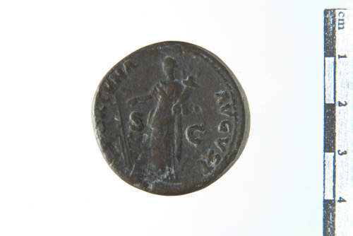 Dritto: Busto laureato di Nerva a d.; contorno perlinato. Rovescio: La Fortuna stante a s. con cornucopia e timone; contorno perlinato