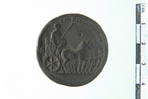 Dritto: Busto laureato, drappeggiato e corazzato di Caracalla a d.; contorno perlinato. Rovescio: Caracalla stante con scettro su quadriga che avanza a d.; contorno perlinato