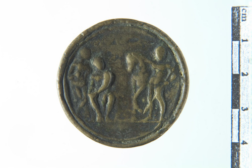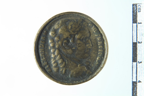 Dritto: Busto di Alessandro Magno con leontè a d.; contorno a bordo. Rovescio: I Dioscuri, uno stante a s. con asta e mano destra appoggiata sul dorso di un cavallo, l'altro seduto frontalmente, rivolto a d., a fianco di Elena stante a d.; contorno a bordo