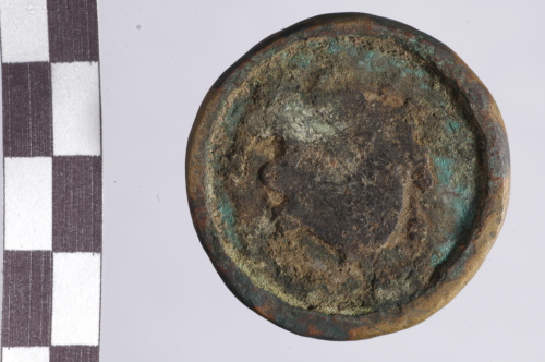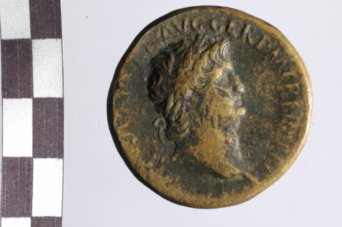 Dritto: testa laureata di Nerone a d.. Rovescio: Porto di Ostia?