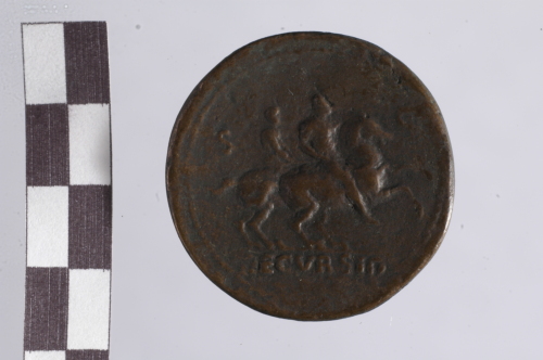 Dritto: testa laureata di Galba a s.. Rovescio: Imperatore al galoppo verso d. affiancato da cavaliere