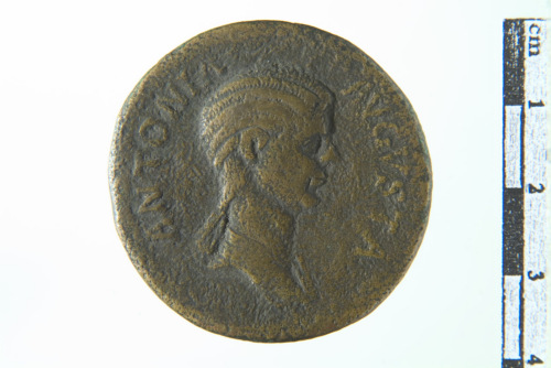 Dritto: testa di Antonia a d.. Rovescio: legenda in corona laurea