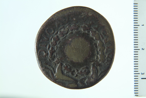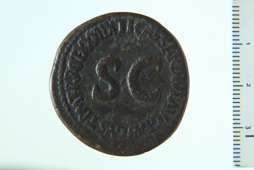 Dritto: Scudo inscritto con [OB CIVES SER] su tre linee entro corona di quercia sorretta da due capricorni; contorno perlinato. Rovescio: S C entro legenda; contorno perlinato