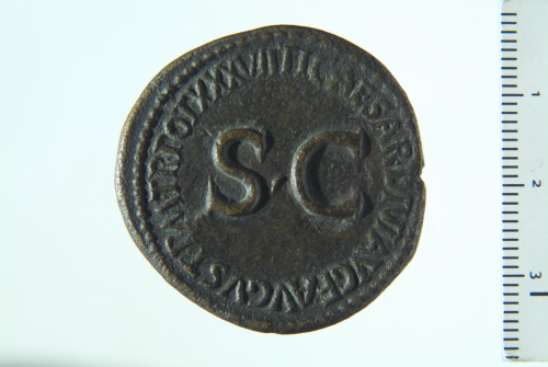 Dritto: Divo Augusto radiato su quadriga di elefanti guidata da quattro uomini a s., con ramo di alloro e scettro; contorno perlinato. Rovescio: S C entro legenda; contorno perlinato