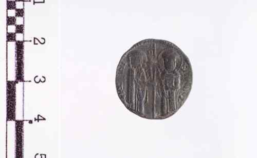 Dritto: S. Marco nimbato e barbato in piedi a d. di fronte, tiene con la s. il libro dei Vangeli e con la d. porge il vessillo al Doge barbato in piedi, a s., di fronte. Il Doge indossa un ricco manto gemmato, tiene con la s. un rotolo (volumen) e con la d. regge il vessillo, la cui banderuola , con croce, è volta a s.. Rovescio: Gesù Cristo con nimbo crociato, seduto in trono, col libro, ornato di cinque perle, appoggiato sul ginocchio s.