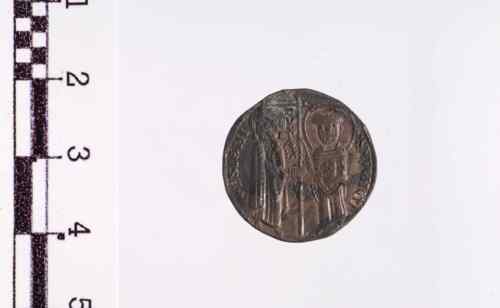 Dritto: S. Marco nimbato e barbato in piedi a d. di fronte, tiene con la s. il libro dei Vangeli e con la d. porge il vessillo al Doge barbato in piedi, a s., di fronte. Il Doge indossa un ricco manto gemmato, tiene con la s. un rotolo (volumen) e con la d. regge il vessillo, la cui banderuola , con croce, è volta a s.. Rovescio: Gesù Cristo con nimbo crociato, seduto in trono, col libro, ornato di cinque perle, appoggiato sul ginocchio s.