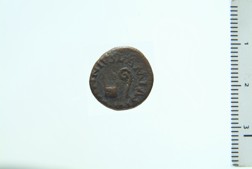 Dritto: Simpulum a s. rivolto a d. e lituus a d. rivolto a s.; contorno perlinato. Rovescio: