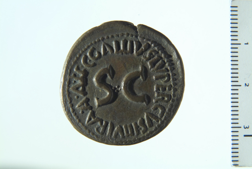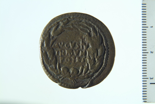 Dritto: legenda entro corona di quercia; contorno perlinato. Rovescio: