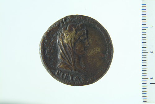 Dritto: Busto velato e diademato di Pietas a d.; contorno perlinato. Rovescio: contorno perlinato