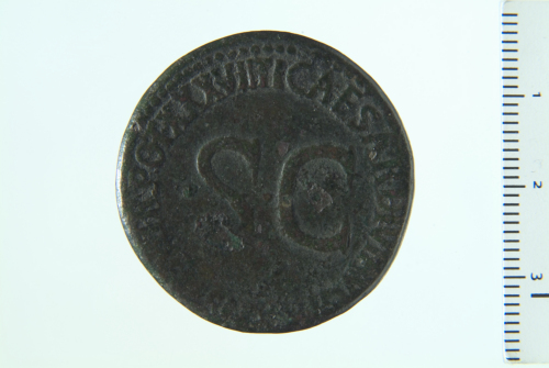 Dritto: Quadriga vuota ornata con Vittoria, trofei e un prigioniero avanza a d.; contorno perlinato. Rovescio: contorno perlinato