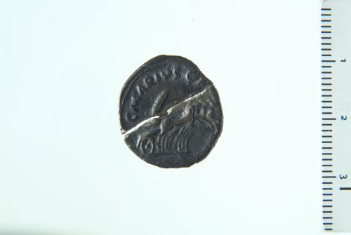 Dritto: Testa di Augusto a d.; contorno perlinato. Rovescio: Quadriga al galoppo a d. con ramo di palma; contorno perlinato