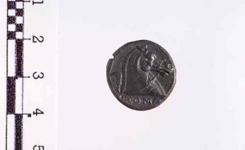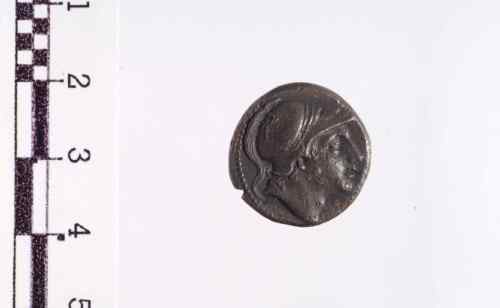 Dritto: Testa elmata di Marte senza barba con elmo corinzio decorato con un grifone. Cerchio di puntini.. Rovescio: Testa di cavallo a d. Cerchio lineare.