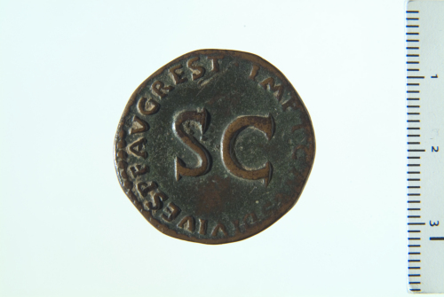 Dritto: Busto di Druso a s.; contorno perlinato. Rovescio: contorno perlinato