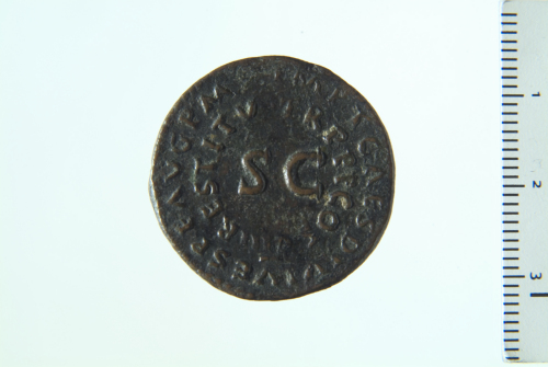 Dritto: Busto di Druso a s.; contorno perlinato. Rovescio: contorno perlinato