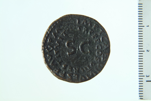Dritto: Busto di Druso a s.; contorno perlinato. Rovescio: contorno perlinato