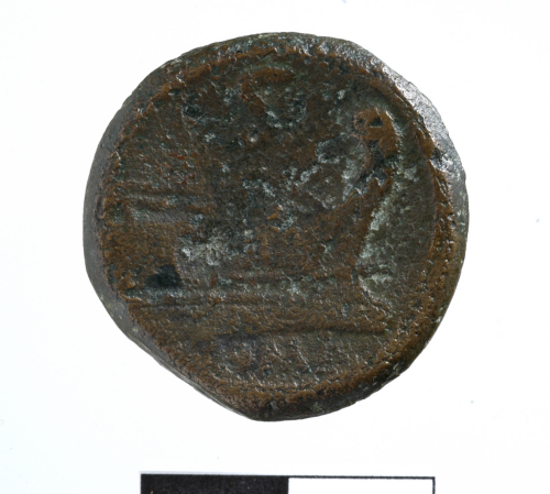 Dritto: Testa laureata di Saturno a d.. Rovescio: Prua a d.