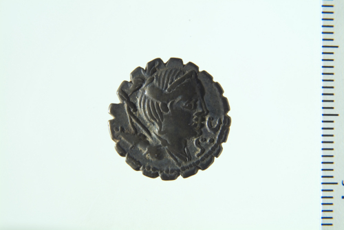 Dritto: Busto di Diana drappeggiato a d. con arco e faretra in spalla; contorno perlinato. Rovescio: Biga in corsa a d. guidata da Vittoria con ramo di palma, redini e ghirlanda; contorno perlinato