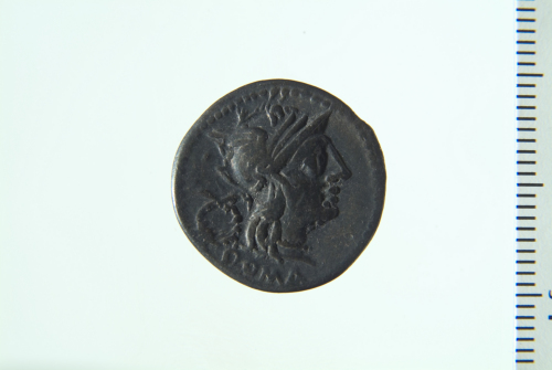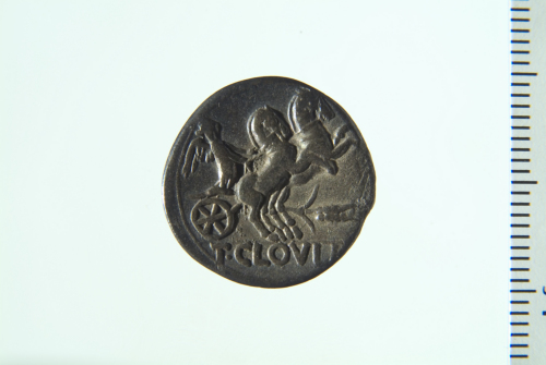 Dritto: Testa elmata di Roma a d.; contorno perlinato. Rovescio: Biga in corsa a d. guidata da Vittoria che tiene le redini; contorno lineare