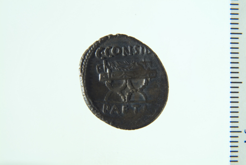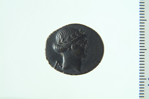 Dritto: Testa laureata di Apollo a d.. Rovescio: Sella curule inghirlandata su cui è appoggiata una corona; contorno perlinato