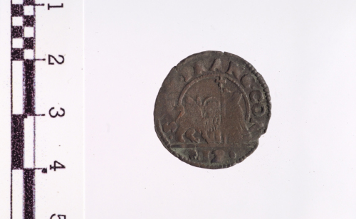 Dritto: Leone marciano rampante verso d. con zampa su libro aperto, a d. il doge inginocchiato a s. tiene con ambo le mani il vessillo. Rovescio: Redentore stante che benedice con la d. e regge il Vangelo nella s.