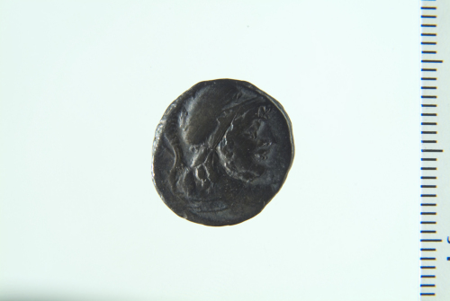 Dritto: Busto elmato di Marte visto da dietro rivolto a d. con spada; contorno perlinato. Rovescio: Biga in corsa a d. guidata da Vittoria con ghirlanda e redini; contorno perlinato