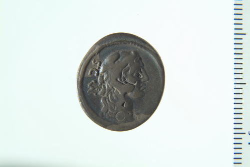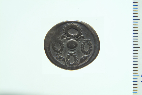 Dritto: testa di Ercole con leontè a d.; contorno perlinato. Rovescio: Globo circondato da tre piccole ghirlande e da una grande ghirlanda, in basso a s, aplustre, a d, spiga; contorno perlinato