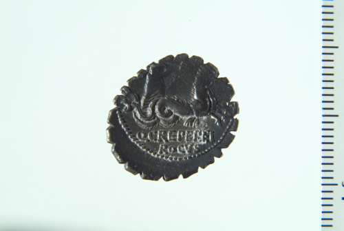 Dritto: Busto drappeggiato di anfitrite visto da dietro e rivolto a d.; contorno perlinato. Rovescio: Biga in corsa a d. con due cavalli marini guidata da Giove con redini e tridente; contorno perlinato