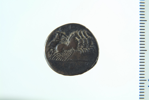 Dritto: Testa di Apollo d. con corona di quercia, in basso fulmine; contorno perlinato. Rovescio: Quadriga in corsa a d. guidata da Giove con redini e fulmine; contorno perlinato