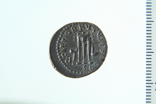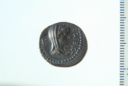 Dritto: Testa di Libertas velata e drappeggiata a d.; contorno perlinato. Rovescio: Tripode tra un'ascia a s. e un simpulum a d.; contorno perlinato