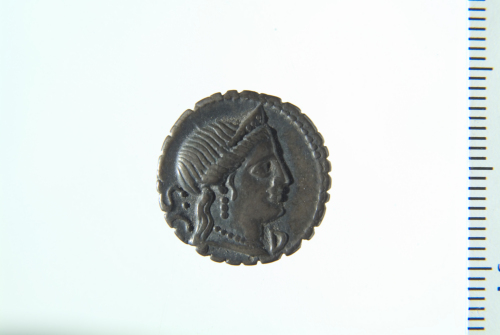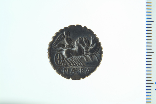Dritto: Testa diademata di Venere a d.; contorno perlinato. Rovescio: Triga in corsa a d. guidata da Vittoria con redini; contorno perlinato