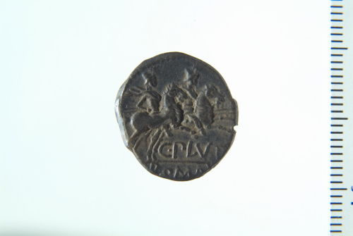 Dritto: Testa di Roma elmata a d.; contorno perlinato. Rovescio: Dioscuri a cavallo a d.; contorno perlinato