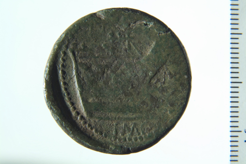 Dritto: Testa laureata di Giano con le fattezze di Pompeo Magno; contorno perlinato. Rovescio: Prua di galea a d.; contorno perlinato