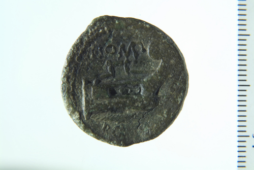 Dritto: Testa laureata di Saturno a d.; contorno perlinato. Rovescio: Prua di galea a d.; contorno perlinato