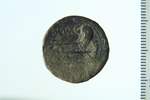 Dritto: Testa laureata di Saturno a d.; contorno perlinato. Rovescio: Prua di galea a d.; contorno lineare