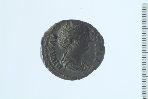 Dritto: Busto drappeggiato di Faustina I a d.; contorno perlinato.. Rovescio: Aeternitas seduta a s. su globo, recante scettro e con braccio d. sollevato; contorno perlinato.