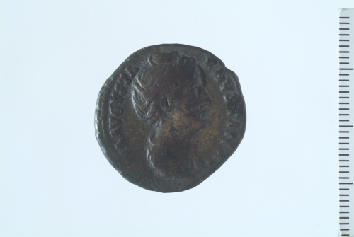 Dritto: Busto drappeggiato di Faustina I a d.; contorno perlinato.. Rovescio: Altare con porta in facciata.