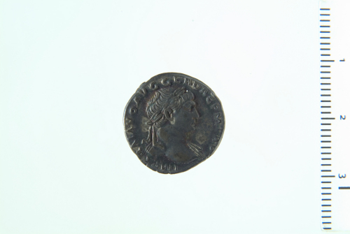 Dritto: Busto laureato di Traiano a d., drappeggiato sulla spalla s., di tre quarti in avanti; contorno perlinato (?).. Rovescio: Arabia stante in posizione frontale, la testa girata a s., reggente fascio di canne (?) nella s. e ramo nella d. protesa; ai suoi piedi, cammello a s.; contorno perlinato.