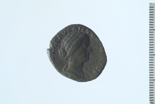 Dritto: Busto drappeggiato di Lucilla a d.; contorno perlinato.. Rovescio: Venere seduta a s., recante Vittoria e scettro; contorno perlinato.