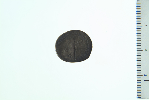 Dritto: Busto laureato di Traiano a d., drappeggiato sulla spalla s.; contorno perlinato (?).. Rovescio: Vittoria avanzante a d., reggente palma e corona; contorno perlinato (?).