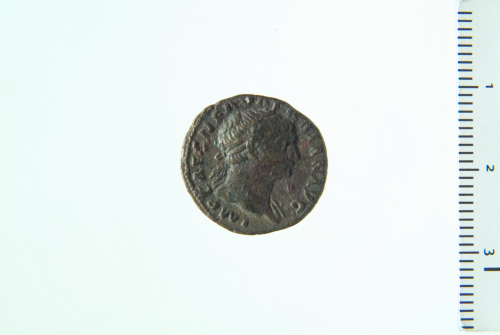 Dritto: Busto laureato di Traiano d., drappeggiato sulla spalla s.; contorno perlinato.. Rovescio: Corona e vaso su tavolo; contorno perlinato.